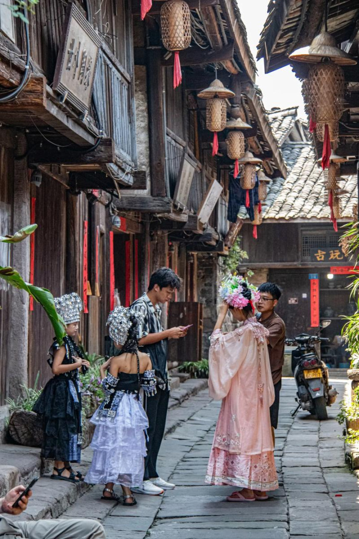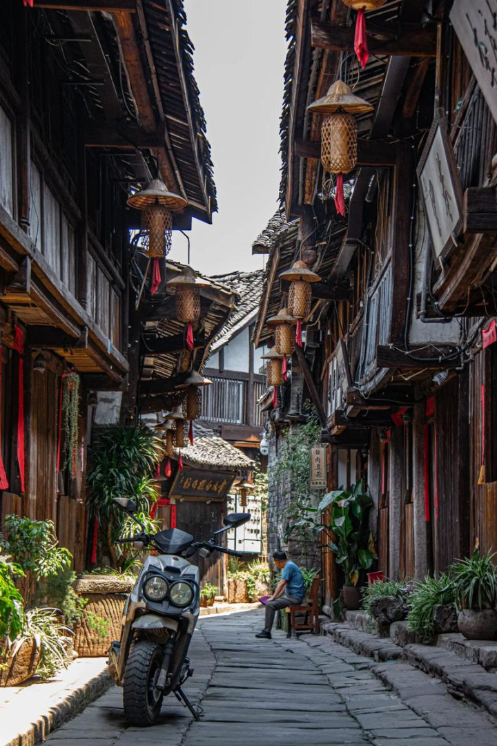 这是条依江而建的老街,距今已有千年历史。据史料记录,老街全长约1000米,宽不外四五米,两旁是穿斗式的木楼老宅。联系词如今走入其中,老街已被新修的仿古交易街环绕,昔日的船埠喧嚣也已千里寂,唯有那些斑驳的木梁、雕花的窗棂,依然在光影间朦胧透出旧日时光的思路。