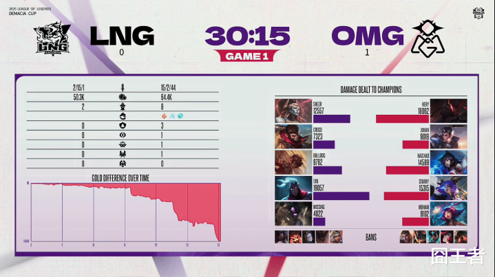 后果第一局比赛,OMG打了一把片面的碾压局。前15分钟,OMG的比拟严慎,朝上幅度不大。16分钟操纵:OMG团战大获全胜击杀三东说念主拿下前锋和小龙;23分钟操纵:妮蔻让开双C,OMG团战齐备谐和打出1换5拿下三龙;最终30分15秒,OMG团灭LNG,先赢一局。