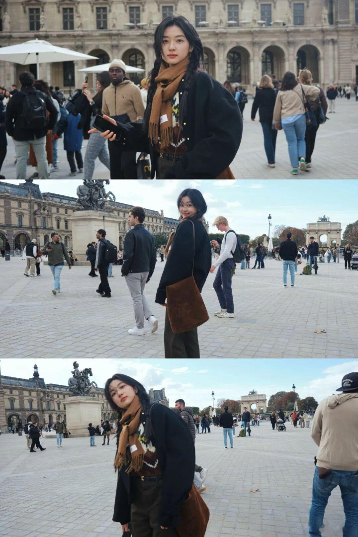 双麻花辫搭配驼色领巾的造型,清甜当然。身处具有历史千里淀的欧洲广场,每一张皆或者一帧电影,好有故事感。