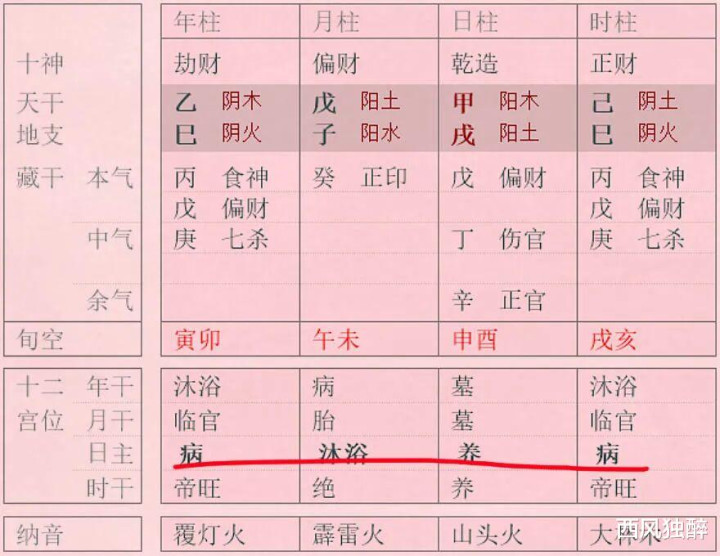 上图是今天,也便是公历2025年12月31日巳时配置小孩的八字,为乙巳、戊子、甲戌、己巳。这个八字的日干为甲木,为命主本东说念主。甲木在年支巳上的十二永生状为“病”,咱们叫作念“年支坐病”,相同的,“时支坐败(沐浴)”、“自坐养(日支为命主自坐)”、“时支坐病”。“坐”咱们也不错说成“逢”,但“逢”字用在大运流年更准确。上图八字日干在四柱地支莫得一处坐“永生、冠带、临官、帝旺”,为身衰。诚然,这个八字日干在月支坐沐浴,沐浴其实是有旺气的,仅仅不是尽头激烈的旺,是以详细判断,这个八字是“身偏衰,并非极衰”。