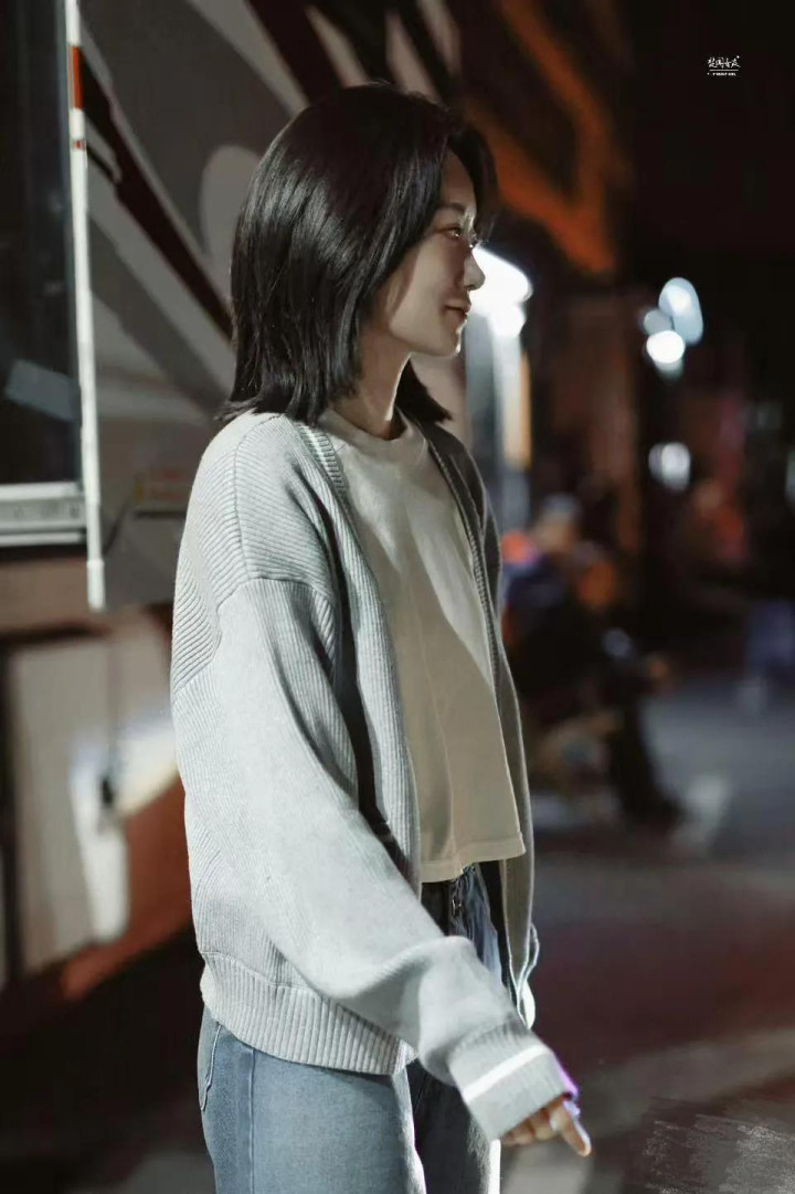 张小斐剪了皆肩短发真年青! 灰开衫白长T牛仔裤, 从简失业悦目!